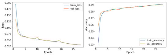 After training the model, we plotted the training history in which the validation loss, validation accuracy, training loss, and training accuracy were plotted against the epochs (Figure 8). A detailed inspection of this figure shows that the training developed properly.