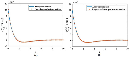 We have demonstrated that the numerical solutions derived by the Laguerre–Gauss quadrature method and the exact analytical formulation are compatible as shown in Figure 2.