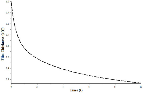 The numerical solution of film thickness is evaluated by the computational tool of the Maple ODE analyzer. The following values of the parameters are considered for the numerical solution of Equation (76).