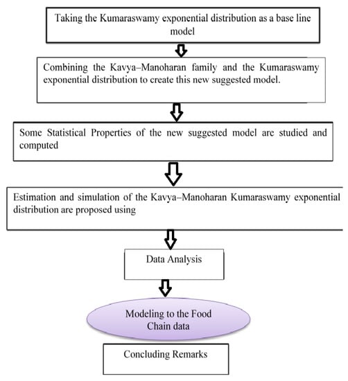 Recently, [9] introduced the sine exponentiated Weibull exponential (SEWE) model to fit food data in the United Kingdom (UK) and the SEWE model was found to have an excellent fit for these data. However, in this article, we hope that the suggested model gives a better fit to the food data used by [9]. In addition, Figure 1 offers a comprehensive description of the work.