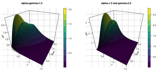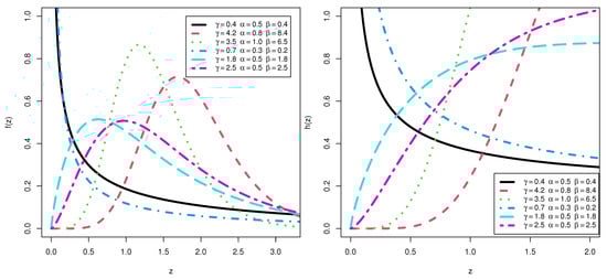 where and are two shape parameters and is scale parameter. The pdf of the KMKE model can be investigated by inserting Equations (3) and (2) into (5) as