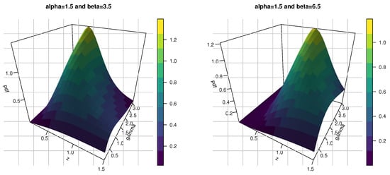 Figure 2 shows the plots of the pdf and hrf for the KMKE model in 2D. Furthermore, Figure 3 and Figure 4 show the plots of the pdf and hrf for the KMKE model in 3D.