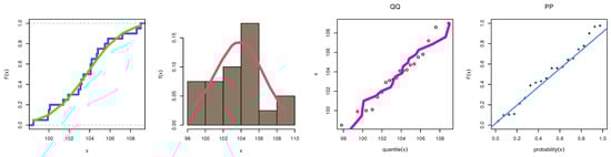 Various strategies for adding a parameter to distributions have been presented and explored in recent years. These expanded distributions are one way to solve the problem of modeling data and for providing greater flexibility in a variety of applications, including food, agriculture, COVID-19, engineering, economics, biomedicine, biology, physics, environmental sciences, and many others. Several famous families are the odd Dagum-G [22], odd generalized exponential-G [23], sine Topp–Leone-G [24], generalized odd log-logistic-G [25], Flexible BurrX-G [26], truncated Cauchy power Weibull-G [27], transmuted Gompertz- [28], transmuted odd Fréchet-G [29], transmuted odd Lindley-G [30], odd Perks-G [31], a new power Topp–Leone-G by [32], extended odd Fréchet [33], extension of the Burr XII by [34], Marshall–Olkin odd Burr III-G [35], exponentiated M-G [36], exponential TX family of distributions [37], truncated inverted Kumaraswamy generated-G by [38], Marshal–Olkin alpha power family of distributions [39] and unit exponentiated half logistic power series class of distributions introduced by [40]. Some recent classes of distributions were discussed in [41,42,43,44,45,46]. Refs. [47,48] studied the Weibull model under a repetitive group sampling plan based on truncated tests and progressively censored group sampling, among others.