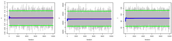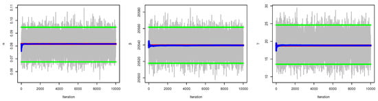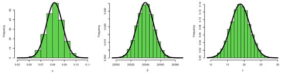 The hyper-parameters will be elicited using the parameters priors ; for more information, see [90]. The mean and variance of the KMKE distribution’s and maximum likelihood estimates will be compared to the mean and variance of the and considered priors (gamma priors), where and N is the number of samples available from the KMKE distribution. By equating and with the mean and variance of gamma priors, we may calculate their respective means and variances.
