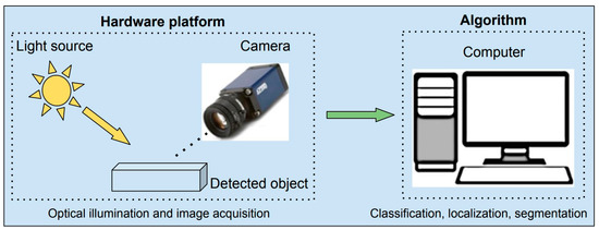 - Deep Learning Algorithms: Deep learning-based defect detection typically requires training object detection models or alternative specialized architectures on the extensively labeled datasets of defect images. Object detection methodologies have been extensively applied in the detection of defects on the surfaces of industrial products, such as steel, plastic, wood, and silk [10,11,12]. The task of object detection in computer vision encompasses two primary functions: localization [13] and classification [14]. In traditional computer vision, classifiers [15] such as SVM, KNN, and K-means clustering have played a vital role in categorizing classes. Meanwhile, object localization mainly employs fast template-matching-based algorithms [16].