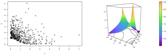 As one of the main important copula functions, the copula density related to the copula in Equation (3) is given as