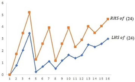 In the following Figure 2, we illustrate that under the above cases, inequality (24) using Example 3 is satisfied.