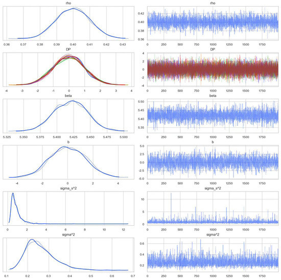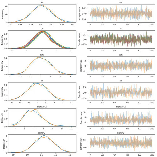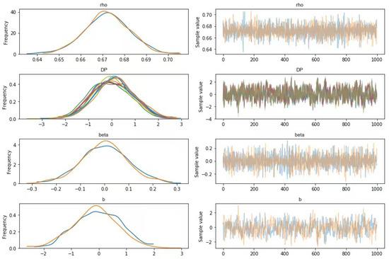 The MCMC method was used to sample and estimate each parameter in the model. The last 1000 iterations were taken to draw the posterior sampling trend graph shown in Figure 13.