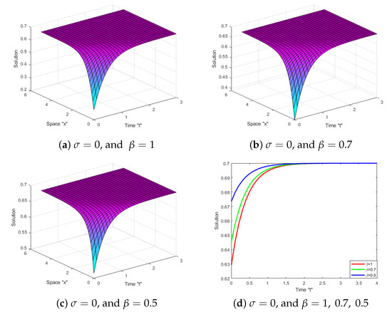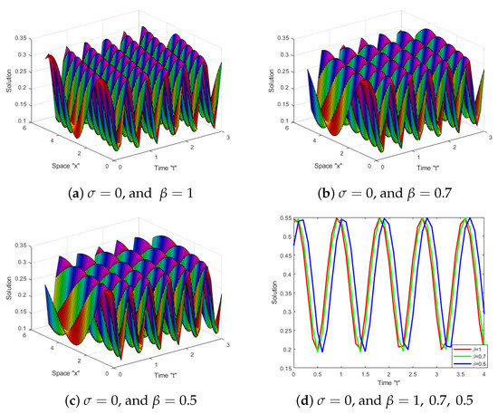 Effects of the beta derivative: When decreases, we can observe in Figure 1 and Figure 2 that the form of the graph is compressed: