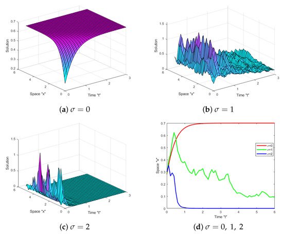 Impacts of white noise: The impact of noise on the solutions is seen in Figure 3 and Figure 4 as follows: