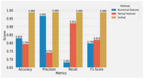 Numerical or textual features each provide separate useful information to distinguish whether the domain name is malicious or not. To investigate the numerical or textual features’ impact on performance individually, we remove the numerical or textual features from the input and its respective modules in the model, and perform comparative experiments while keeping other conditions unchanged.