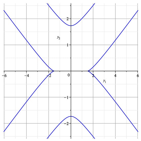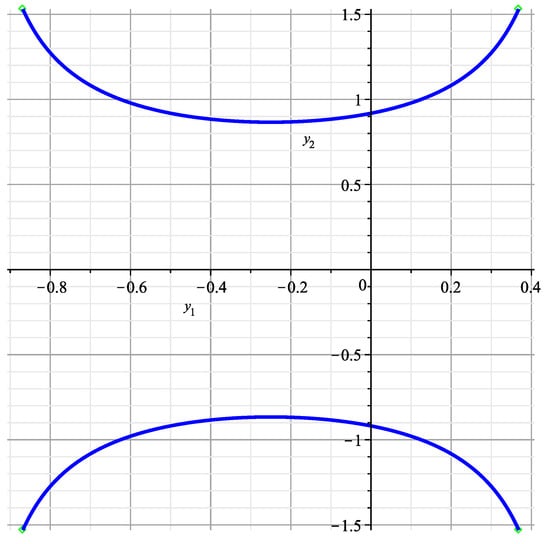 If , i.e., , then the curve (34) is shown in Figure 7. It is similar to the curve of Figure 2 in [25] near the origin, corresponding to . If , it is shown in Figure 8 and is similar to the curve of Figure 4 in [25] near the origin, corresponding to .