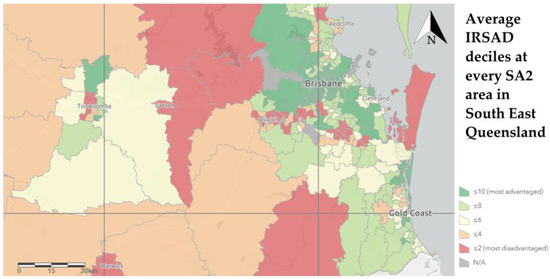 Visualization of SEIFA scores on the map of South East Queensland [43].