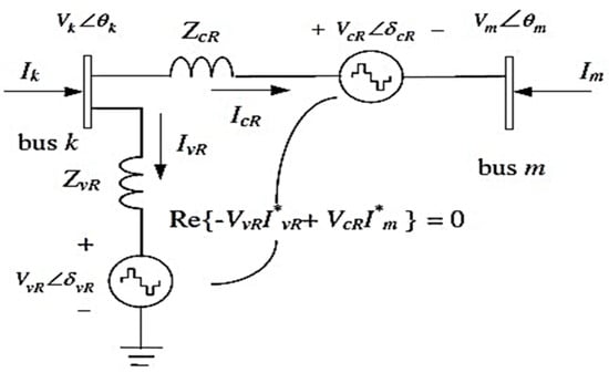 where, is the controllable magnitude of the voltage source of the shunt converter, which must lie in the range () and is the controllable phase angle of the voltage source of the shunt converter, which lies in the range (. Likewise and are the voltage magnitude and phase angle of the series converter, and their corresponding controllable limits are () and (), respectively. The phase angle of the series injected voltage determines the mode of power flow control.