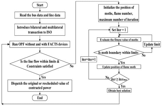 Modified Moth Flame Optimization technique exhibits itself to be the most efficient technique for dispatching power in a restructured power market using load curtailment strategies and minimizing the deviation in transactions. Figure 5 represents the implementation flowchart of the suggested MMFO algorithm.