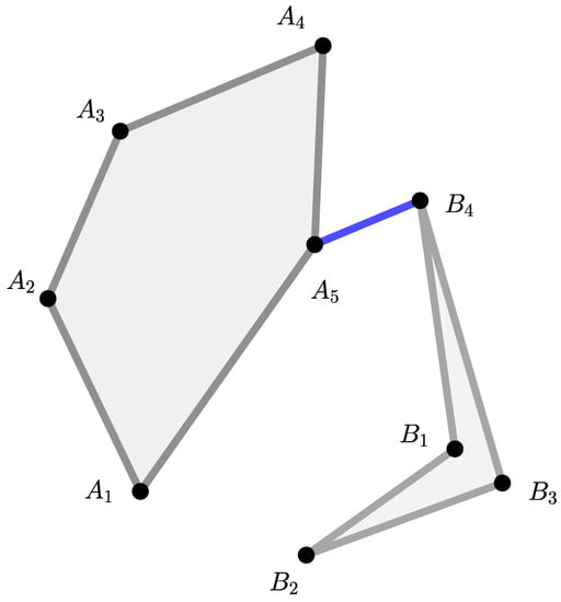 We may generalize the above example by replacing the clusters A and B with their convex hulls and [18,28,29]. In this case, the following is possible (Figure 2)