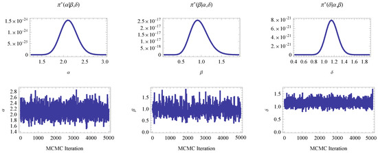 Figure 3 shows the MCMC iteration and the marginal posterior distributions of
