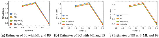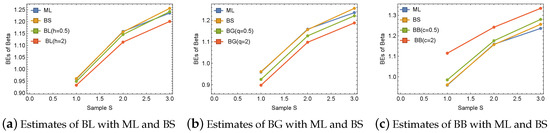 Figure 6 show the differences between the estimates of MLEs and BEs for different loss functions with different hyperparameters for