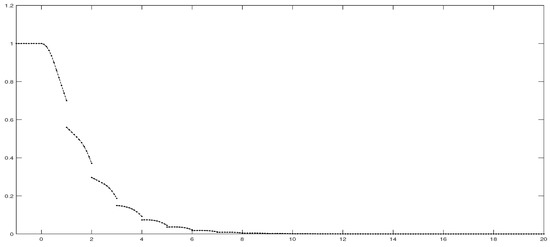 where . In view of Theorem 1, we can easily obtain that the matrices have bounded inverses whenever , and there exists a constant such that