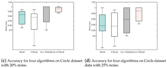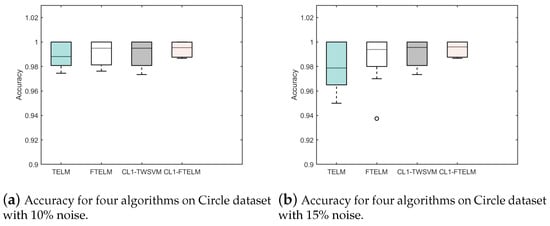 -FTELM algorithms on the Circle dataset in different noises ratios. The ratio is set in the range of