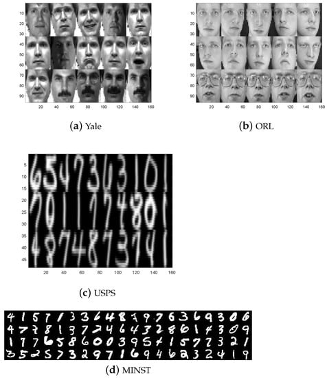 The image datasets include Yale, ORL, USPS, and MNIST.