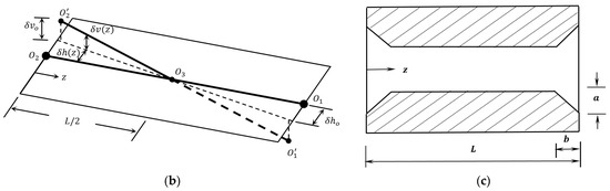 Schematic representation of the journal bearing. (a) Ideal case (without misalignment), (b) Representation of the 3D deviation, and (c) Variable profile.