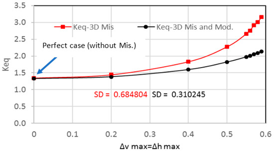Effect of geometrical modification on the equivalent stiffness coefficient for a range of 3D misalignment parameters.
