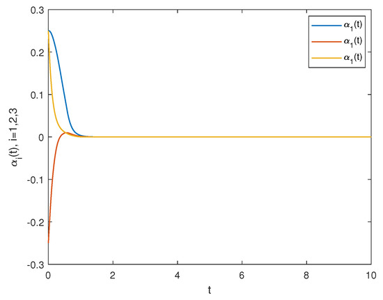 are satisfied, where , , , . Thus, for any initial conditions within the set , the trajectories of the closed-loop system (6) will converge asymptotically to zero.