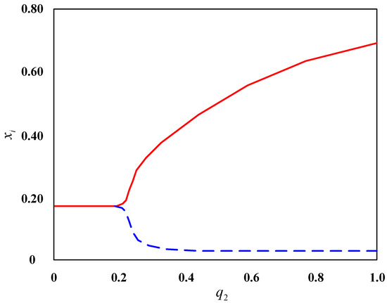 Firstly, it is assumed that there is no diffusion of technological innovation in the normal survival and evolution process of the enterprise community, and only the stability of the enterprise community under the presence of enterprise merger behavior is considered. Based on this assumption, in order to facilitate mathematical interpretation, Formula (1) is dimensionlessly transformed as follows: