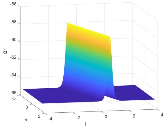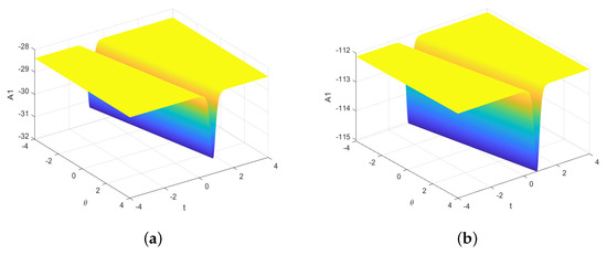 When and , the solitary wave solution of Equation (47) is obtained.
