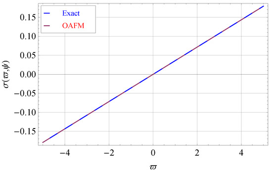 Two-dimensional plots of exact and OAFM solution of Problem 1.