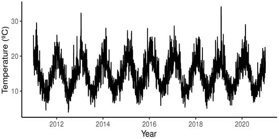 The data are obtained from the Meteorological Directorate of Chile “http://www.meteochile.gob.cl/” (accessed on 22 November 2022)—specifically, from “https://climatologia.meteochile.gob.cl/” (accessed on 22 November 2022). And the records belong to the El Tepual Puerto Montt Ap Station (code 410005).