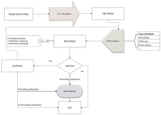 - Bobbie, A.; Karwowski, W. Simulation-Based Evaluation of Patient Appointment Policies for a Primary Care Clinic with Unscheduled Visits: A Case Study. Int. J. Hum. Factors Model. Simul. 2019, 7, 152. [Google Scholar] [CrossRef]