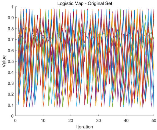 Finally, to illustrate the persistence of sensitivity in both original systems and set-valued systems within the logistic map, a simple numerical simulation is provided as an example. This demonstration highlights how the map maintains this fundamental characteristic across different system types.