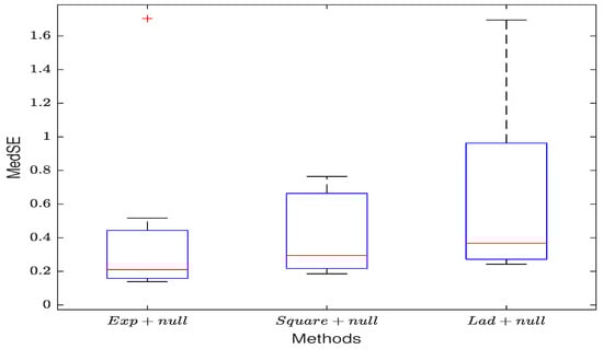 Each scenario was based on 100 simulations. To gauge the model’s superiority, we compared it with square loss and absolute loss. For accurate performance evaluation, we employed the median squared error (MedSE, Liang and Li, 2009) [18] as the metric for accuracy comparison.