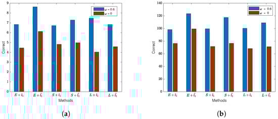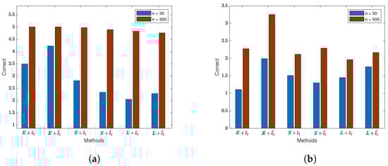 In this section, we perform variable selection on the generated Gaussian noise data (including and ) using the SEM model with three different loss functions and the penalty method (lasso or adaptive lasso). “Correct” represents the average number of correctly selected zero coefficients, and “InCorrect” represents the average number of non-zero coefficients incorrectly identified as zero. “Exp + l1 ”, “S + l1” and “Lad + l1” represent SEM models with exponential loss, square loss, and absolute loss, respectively, using the lasso penalty. “Exp + ”, “S + ” and “Lad + ” represent SEM models with exponential loss, square loss, and absolute loss, respectively, using the adaptive lasso penalty. The sample size for the variable selection simulation experiments is .