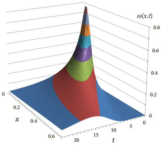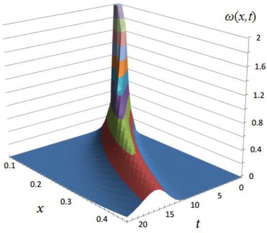 The two-dimensional surface of conventional probability density function at , , , is shown in Figure 9. Initial and boundary conditions were set using the -function at point , .