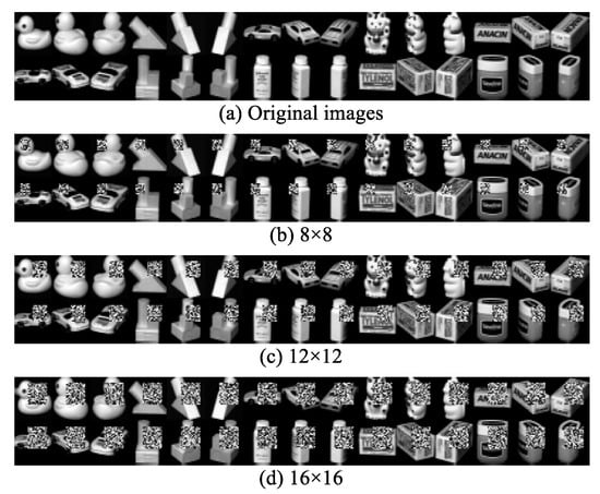 To verify the noise reduction ability of LRPFS, noise tests are conducted on the COIL20 dataset with random noise of 8 × 8, 12 × 12 and 16 × 16 sizes added to each sample (32 × 32) respectively to generate three synthetic datasets as shown in Figure 5b–d, and the clustering results are shown in Table 5. It can be seen that LRPFS is superior to other comparison methods under the influence of various noises and still achieves excellent performance, especially in Figure 5b, it is extremely difficult to select significant features since most features of the pictures are blocked according to the excessive size of the noise. However, LRPFS with latent relationship penalty term still achieves satisfactory results, for example, the ACC of LRPFS is 9.06% higher than that of RNE on the 16×16 noised COIL20 datasets. Consequently, LRPFS has the strong learning capability of identifying discriminative features and diminishing noise.