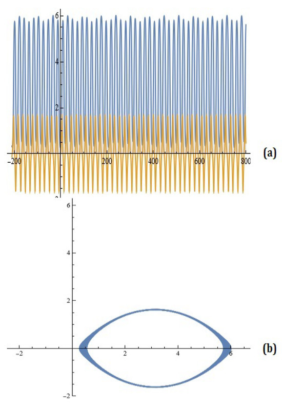 For the given , , , , the simulations of the system (3) for , are depicted in Figure 3.