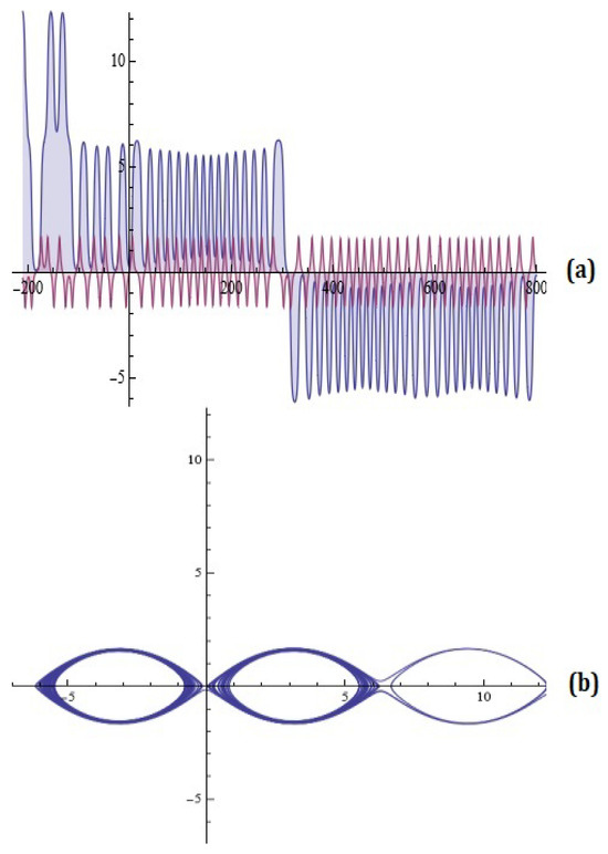 For example, the Melnikov function (7) for fixed and , in case (a) , and in case (b) , , is depicted in Figure 11.