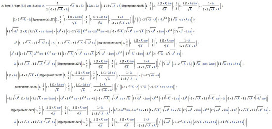 Furthermore, for the explicit representation of , they must perform a number of additional calculations, including the operator, since the calculated integrals (see Figure 11 and Figure 12) are expressed by hypergeometric function .
