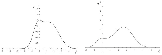 where . Since and for and , we conclude that the zero equilibrium is ESS (evolutionary stable), since it is located at a global maximum of the fitness function, see [9,10,15]. On the other hand, if and , then and , which means that the positive equilibrium point is ESS since it is located at the global maximum of the fitness function. See Figure 1.