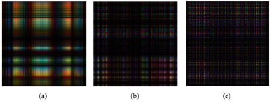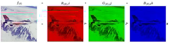 where the matrices , , and represent the red, green, and blue component matrices of a color image, respectively. This representation is visually illustrated in Figure 3 [18].