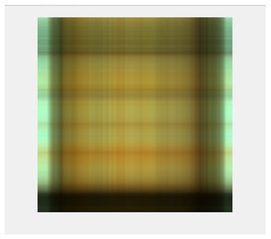 where and are elliptic quaternionic vectors, and R represents the rank of the elliptic quaternion matrix . Each term is called an elliptic quaternion-valued eigenimage of the image. Consequently, the color image can be thought of as a linear combination of R eigenimages. The first eigenimage, shown in Figure 5, of the test image baby.png is obtained with the function in Listing 6: