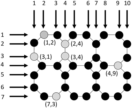 with 7 subrows and 10 subcolumns. Labeled vertices are presented in gray color, while others are presented in black.