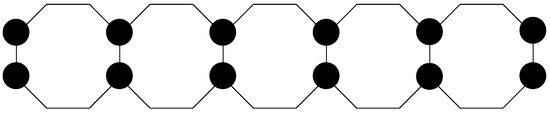 Theorem 5. For a linear octagonal chain with m octagons, it holds that Proof of Theorem 5. In the linear octagonal chain, every vertex is adjacent to at least one vertex of degree two. To achieve double total domination, all vertices on the graph must be in the double total domination set. There are