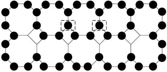 Proof of Lemma 1. First, we see that there are exactly vertices on the border of . There are on the top and on the bottom borders, respectively. Furthermore, there are on each side border. Hence, there are border vertices. Further, all of them are adjacent to at least one vertex of degree two. So, they all must be in any double total dominating set. □