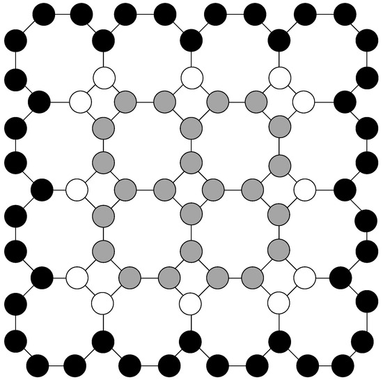 Figure 9. The border vertices are colored black. White internal vertices are total dominated, and gray internal vertices are not dominated at all. The gray vertices make an octagonal grid
