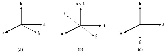 Case: . If we assume , then . Therefore, . However, since because satisfies the equation , we have when is assumed. In this case, the inequality in Equation (35) reduces to . The inequality, in turn, is obviously correct. The take-home message when is the following. When we assume , the set is a set of orthogonal vectors. In particular, in this case, and do not need to be collinear. We only have that is orthogonal to and belongs to the plane spanned by . The orthogonality between and is a consequence of the assumption . Also, is achieved only when and are collinear (i.e., the magnetic field does not change in direction). Finally, the collinearity of and also implies the vanishing of the term in Equation (34).