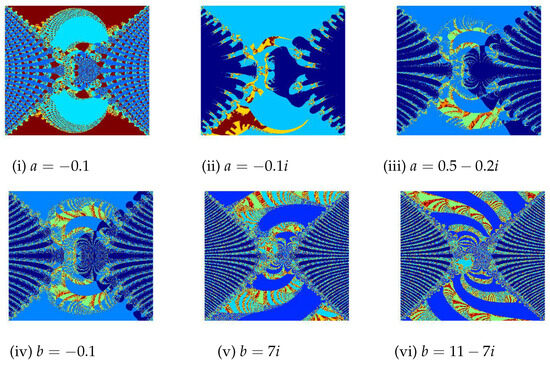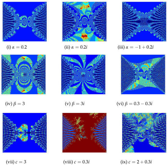 Subsequently, many mathematicians employed various iterative processes, including Mann, Picard, Ishikawa, Noor, Junkck-Ishikawa, Junkck-CR iterations, and Junkck-SP iterations with c-convexity. These approaches have been used to explore the behavior and patterns of different polynomials, as well as complex sine and cosine functions, and transcendental functions. It is recognized that the color, shape, and other properties can change based on the iterative methods applied to the same functions (see [13,14,15,16,17]). Iterative schemes are not limited to the generation of Julia sets; they also have applications in generating other types of fractals, including biomorphs, iterated function system fractals, inverse fractals, and root-finding fractals (see [18] and its references).